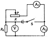 为定值电阻,R为滑动变阻器,闭合开关S后,在滑动变阻器滑片P向左滑动的过程中( )
