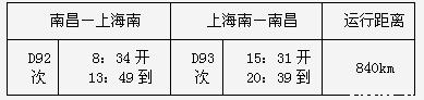 (1)D92次列车从南昌到上海南所用的时间是多少min?