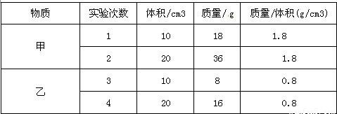 为了研究物质的某种特性,某同学用甲乙两种液体做实验,用天平和量筒分别测出两种液体不同体积时的质量,记录如下表:
