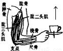 如图所示,人的前臂可视为杠杆,当曲肘将茶杯向上举起时,下列说法中正确的是( )