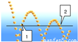 掉在水平地面上的弹性小球会跳起,而且弹跳的高度会越来越低.图示是小球弹跳的频闪照片,小球在1、2位置的高度一样.下面说法正确的是( )