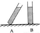 如图所示,两个相同的试管内分别装有质量相等的不同液体,液面高度相等,则( )