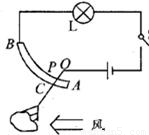 一位同学设计了一个风力测定仪,如图,0是转动轴,OC是金属杆,下面连接着一块受风板,无风时OC是竖直的,风越强,金属杆偏转的角度越大.AB是一段圆弧形电阻,P点是金属杆与弧形电阻相接触的点,电路中接有一只灯泡.测风力时,闭合开关s.通过分析可知:金属杆0C与弧形电阻AB组合在一起相当于一个 ______,观察灯泡L的亮度可以粗略地反映风力的大小;若要提高装置反映风力大小的性能,可采取的方法是 ______.