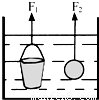 如图所示,将系于绳端质量相等的铁桶和实心铁球同时浸没在水中,静止在如图所示位置,绳子对它们的拉力F