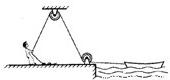 如图所示,工人用240N的拉力拉绳使水中的小船匀速靠岸,用10min将绳子拉下60m,已知小船重1.8×10