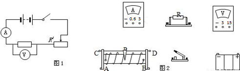 (1)按电路图(图1)用笔线连接电路(图2).