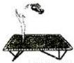 我们看杂技演员从高处跳下落在绷床上,又被弹起的过程如图所示,请你写出演员在表演时涉及到2个物理知识.