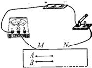 如图,A和B分别是长短、粗细都相同的锰铜线和镍铬合金线,MN间接入A并接通电路时,电流表的示数为0.4 A;接入B并接通电路时,电流表的示数为0.26 A,这表明A的电阻较