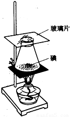 如图所示,把少量的碘放入烧瓶中,上面盖玻璃片,然后微微加热,可观察到