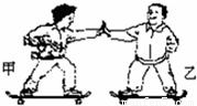 站在滑板上的甲、乙两位同学相对而立,如图所示甲同学用60N的力推乙同学.你认为将会出现什么现象?并说明其中的道理.