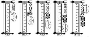 某同学在研究轻质弹簧的长度随拉力变化的关系时,进行了如图所示的实验.已知每个钩码重为0.5N,刻度尺的最小分度值是1mm.