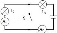2规格相同,当开关S闭合时,两灯均发光,电流表A和A