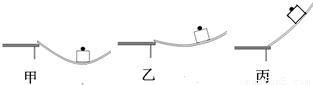 小明同学为了探究“放在斜面上的物体对斜面的压力跟斜面倾斜程度的关系”,进行了实验,步骤如下:①用双面胶将一个200克的钩码固定在1米长的塑料直尺的中间,将直尺的一头固定在桌子的一端,如图甲所示;②缓缓抬起右端,让直尺与水平方向有一定的夹角,如图乙所示;③继续抬高右端,增大直尺与水平方向的夹角,如图丙所示.