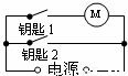 如图所示,某机要室大门控制电路的两把钥匙分别由两名工作人员保管,单把钥匙无法打开,电路中可行的是( )