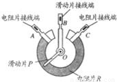 D.滑动片P逆时针向C端滑动的过程中,接入电路中的电阻变小