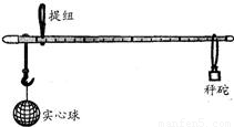杆秤是一种很古老但现在仍然在广泛使用的一种测量质量的工具.小林同学用一杆秤称一实心球的质量,如图所示.当杆秤在水平位置平衡时,秤砣拉线正好压在4kg的刻度线上.根据秤砣拉线、提纽和称钩所在秤杆的位置之间的距离的粗略关系,可以估测出秤砣的质量大约是( )