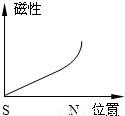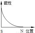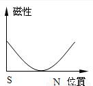 一根条形磁铁,左端为S极,右端为N极.下列表示磁体周围、从S极到N极磁性强弱变化情况的图象中正确的是( )