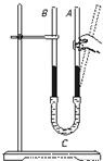 如图所示的装置中,两端开口的U型管内注入一定量的水,将A管向右倾斜待稳定后,下面说法中正确的是( )