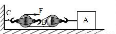 如图所示,不计滑轮、绳重及装置自身摩擦,物体A重30N,在F=8N力作用下,沿水平面作匀速直线运动,则A物所受摩擦力大小为