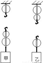 小明要将一个较重的物体提升到楼上,于是他找来了滑轮组,发现可以将它们组合成如图的甲或乙,请你帮他选择一个组合并绕好绳子,使得人站在地面操作滑轮组能最合理而且最省力.