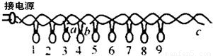如图所示是一串规格相同的彩灯,电路中a、b、c三处导线未接通.问:这些彩灯的连接方式是