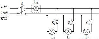 (检验灯泡)取代保险丝来检查新安装的照明电路中每个支路的情况,如图所示.当S闭合后,再分别闭合S