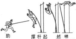 如图,表示撑杆跳高运动的儿个阶段:助跑、撑杆起跳、越横杆.在这几个阶段中能量的转化情况是: