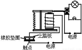 如图是小强同学在研究性学习的活动中为某仓库设计的一种防盗报警器.其踏板放在仓库的门口,电铃和灯泡放在值班室内,观察电路可知.这个报警器的工作原理是:有人踩踏板时