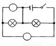 电路中小灯都能正常发光,请在电路图中的圆圈内填上适当的电流表或电压表.