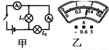 如图甲的电路中,当闭合开关后,两个电流表指针偏转均如图乙所示,则通过灯泡L