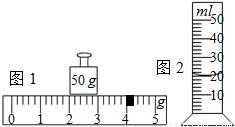 (2)用调节好的天平测量液体的质量.往烧杯中倒入液体,测出杯与液体的总质量为70g,把杯中一部分液体倒入量筒中,如图2所示;再测烧杯和剩下的液体的总质量时,发现加减砝码总不能使天平平衡,这时应移动______使天平平衡.若天平再次平衡时所用的砝码和游码的位置如图1所示,则倒入量筒内的液体的质量为______g,量筒内液体的体积是______cm
