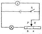 如图所示,一只标有“8V4W”的灯泡£与一只滑动变阻器月R串联,开关S闭合,滑片P在b点时,电压表的示数为12V,灯泡正常发光;当滑片P从b点滑到a点时,电路中电阻增大了6Ω,则: