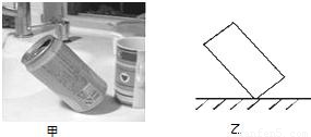 在易拉罐内装进适量的水,能使罐侧立而不倒下(如图甲示).请在如图乙中画出,装了适量水的整个罐受到的重力与支承力的示意图.