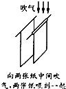 B.其实,上述现象不可能发生,从上方向前吹气,给纸条一个向下的力,纸条应向下运动