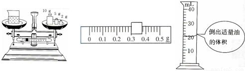 | 烧杯和食用油的总质量(g) | 烧杯和剩余油的总质量(g) | 倒出油的质量(g) | 倒出油的体积(cm3) | 油的密度(g/cm3) |