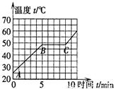______物质是非晶体,______物质是晶体,它的熔点是______,熔化过程经历了______min.图中晶体在50℃时是______态,晶体加热9min时是______态.