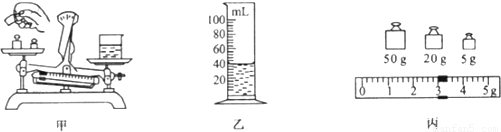 (2)乙同学操作正确,测得烧杯和盐水的总质量为120克后,把烧杯中的盐水倒入量筒中一部分(如图乙所示),量筒中盐水的体积为______毫升,测量烧杯和杯中剩余盐水总质量时,所加砝码和游码位置如图丙所示,那么量筒中盐水的质量为______克,由此可算出该盐水的密度为______千克/米