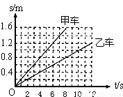 甲、乙两小车同时同地同方向做匀速直线运动,它们的s-t图象如图所示.经过6秒,两车的位置关系是( )