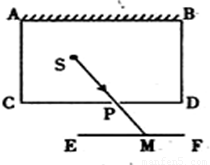 如图所示,ABCD是一间不透光的房间,墙AB是平面镜,房中S处有一个正在发光的电灯,CD墙上有一个小孔P,在墙外不远处的另一白墙EF上得到两个亮点.图中已经画出了一个亮点M及其光路,请把另一个亮点N及其光路图画出来.