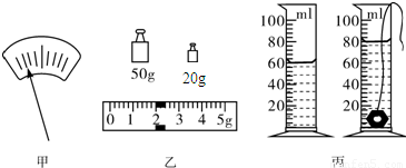 ②用调节好的天平测零件的质量.天平平衡时,砝码的质量及游码在标尺上的位置如图乙所示,则零件的质量为______g,用量筒测得零件的体积如图丙所示,可算得小金属零件的密度为______g/cm