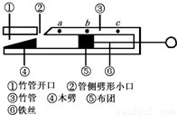 (2)当布团⑤分别位于a、b、c三个位置时,竹笛发声音调最高的位置是