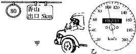 小李开车时看到如图甲所示的交通标志牌,此时汽车内的速度计如图乙所示.