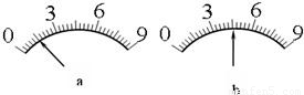 在实验室,某同学发现一个电流表有两个量程,大量程是0~9A,小量程模糊不清.为了测量小量程是多少,她先用大量程接入电路,指针位置如图(a)所示,然后再改用小量程接入同一电路,指针指示如图(b)所示,则电流表的小量程为( )
