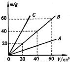 如图所示是A,B,C三种物质的质量m与体积v关系图线,由图可知,A,B,C三种物质的密度ρ