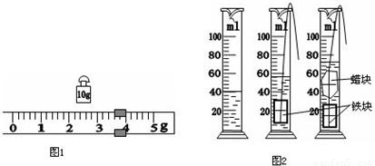 用调好的天平测量蜡块的质量,天平平衡时,右盘中的砝码及游码在标尺上的位置如图1所示,蜡块的质量是______g;测量蜡块体积的过程如图2所示,蜡块的体积是______cm