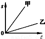 甲、乙两人同时从同一起跑线出发,同向做匀速直线运动,某时刻他们的位置如图所示,图中能正确反映两人运动距离与时间关系的是( )