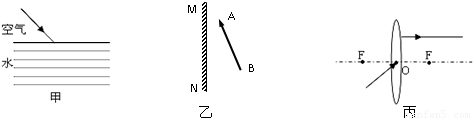 在图丙中画出对应的入射光线和折射光线.