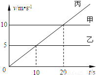 甲、乙、丙从同一地点、同时出发,沿同一方向做直线运动,甲、乙均做匀速直线运动,丙从静止开始加速运动,速度-时间图象如图所示.求: