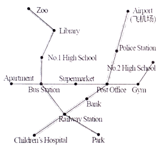 【3】Jane is at No.2 High School. Now she is going to the Bus Station. Which station is not on her way?