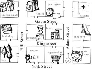 (3)Start from A, walk along Adam Street, turn left at the second crossing, and she will find ________.